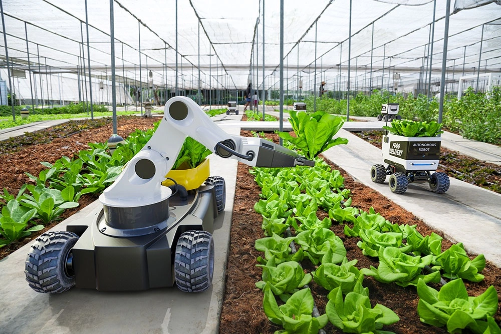 Электронные модули мониторинга параметров выращивания. Роботизированные механизмы подвязки и сбора урожая с цифровым управлением процессами.