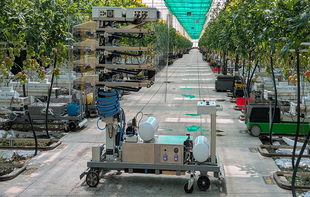 Технология Arugga AI Farming уже применяется в теплицах Австралии, Европы и Америки: она обеспечивает урожайность на 20% выше ручного опыления и на 5% выше, чем при использовании шмелей. Робот оснащён ИИ‑системой компьютерного зрения для распознавания готовых к опылению цветов и воздействует на них калиброванными воздушными импульсами.